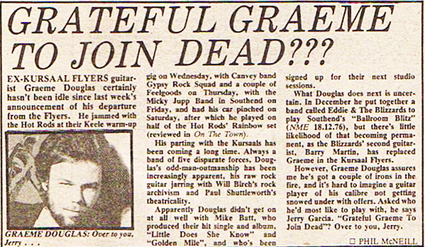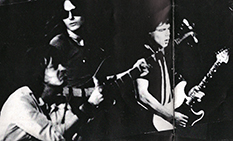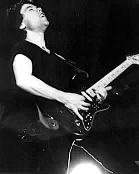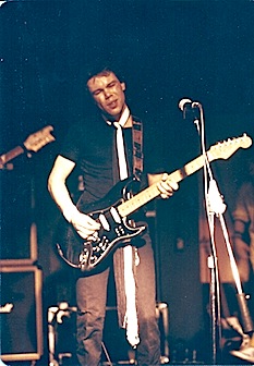 Home to England, and a Christmas show at the Chalk Farm Roundhouse, supported by Peter Perrett and the Only Ones. Our guitars had been held in Customs, so we were forced to borrow some from our Agent, Ian Flooks, who was also representing Andrew Bond. Now Andrew had a revolutionary new guitar design. Based on a normal body, he had manufactured the neck from a sawtooth-shape stainless steel. It was a FAST neck, and looked extremely flashy; the problem was that, with the amount of sweat generated, the fingerboard became so slippery that it was very difficult to play. (I bought one nonetheless - the guitar now has a normal maple fingerboard). He went to design and manufacture some quite revolutionary guitars - I don't think they're still in production, but, I believe, they are collectors' items.
