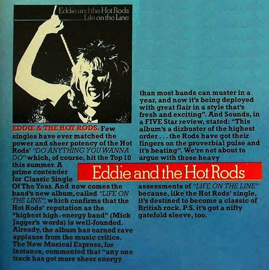 “Ed” I said on the 'phone, “Are you serious about me joining the Hot Rods"? “If you are, then the answer's Yes!” Next day Ed, together with Barrie Masters, came round to my house with some scribbled lyrics. “See what you make of these”, he said, “I want MC5 meets Iggy and the Stooges”. I had been working on an uptempo song about leaving Sarfend - I wanted to call it Quit this town, so I let them hear that, which got us off to an uptempo start. It was even better the next day when a scramble of writing that reminded me of Aleister Crowley's “Do what thou wilst shall be the whole of the law”, metamorphosed in my brain to the Springsteen-inspired Do anything you wanna do. When Barrie and Ed came round that day, I presented them with working drafts of the two songs.